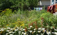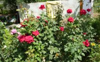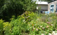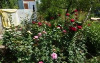 — Огород и сад с яблоней, вишней, черешней, смородиной, шиповником, абрикосом и орехом.