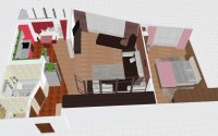 Кухня частично объединена с залом, спальня раздельная. Есть рабочий уголок. Вся квартира меблирована, встроенная кухня, много мест хранения (шкафы-купе). Заходи и живи!
