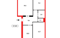 В квартире раздельная планировка с квадратным коридором, общей S=65кв.м., кухня S=9 кв.м.