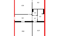 Общая площадь - 72 м2, кухня - 8,5 м2.