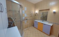 Современный санузел с качественной сантехникой разделен на две зоны,просторная ванная зона и сам санузел.