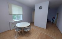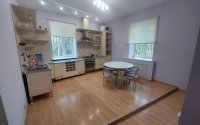 Просторная гостиная для отдыха и рабочим местом,переходит в столовую и кухню с удобной рабочей зоной.Оригинальное разделение комнат.