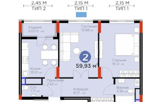 59.5 м²