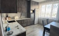 Продается квартира с ремонтом и новой техникой. Просторная кухня и ванная полностью оборудованы. Пластиковые окна заменены на двойной стеклопакет, есть кондиционер. Балкон и прихожая требуют доработки. Мебель и посуда остаются.
