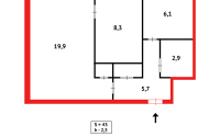 Общая площадь 43,6 кв.м, кухня 6,1 кв.м.