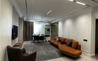 Продаётся 4-комнатная квартира в элитном ЖК «Baisanat» от Orda Invest, в тихом районе Комсомольский — центре города, вдали от магистралей. Квартира площадью 133 м² находится на 7 этаже (над ней — техэтаж), с потолками 3,3 м, полностью укомплектована встроенной мебелью и техникой, выполнен дизайнерский ремонт из качественных материалов, все документы в порядке. Комплекс предлагает фитнес-зал, бассейн, детскую комнату, зону отдыха для водителей, закрытую территорию с охраной и видеонаблюдением.