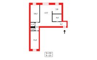 Квартира студия 59 кв.м., расположена на 1/5 этаж, не угловая, в доме 1967 года постройки.