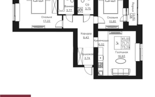 Полноценная распашонка с раздельной кухней, двумя санузлами и балконом. Окна выходят на солнечную сторону и во двор.