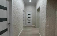 — Пол: ламинат + кафель (в зонах кафеля — тёплый пол)