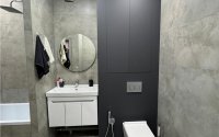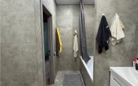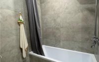 🚿 Санузел совмещён, зато плитка — прям как в Pinterest. Можно залипать в душе и чувствовать себя в спа.