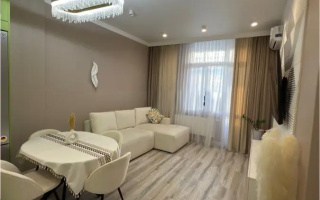 Квартира тёплая, тихая и очень уютная, с удобной планировкой: просторная прихожая, два санузла, гардеробная, балкон, большая лоджия и кухня площадью 26 м². Все комнаты правильной формы, потолки — 2,8 м. Есть кладовка и кондиционер.