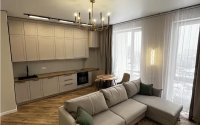 Планировка: евро-трёшка (кухня-гостиная и 2 спальни).