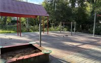 Во дворе современная детская площадка.