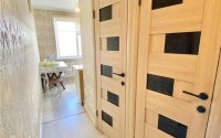 Выполнен косметический ремонт, балкон остеклен деревом.