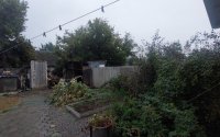 Дом был построен на участке 4.6 сотки. Есть хоз постройки, недостроенная баня, гараж, беседка. Участок огражден забором - профлист.