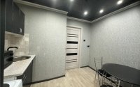 В квартире очень качественный косметический ремонт: Окна, лоджия пластик, пол линолеум, натяжной потолок, новые м/к двери, надежная металлическая входная дверь. Санузел/ванная комната кафель.