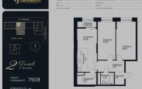 Квартира общей площадью 77,6 м² расположена на 11 этаже 12-этажного дома. Современная планировка включает кухню-гостиную и две изолированные спальни.
