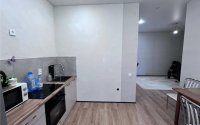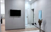 2-х комн студия 39,3 кв.м. с отдельной спальной, кухня 9.3 кв.м. отделена от зала, можно установить дверь или витражную стеклянную перегородку.