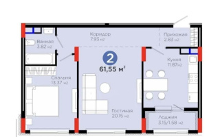 61.55 м²