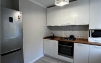 • Встроенная кухня под заказ: газовая варочная панель, электрический духовой шкаф, вытяжка, микроволновка, кухонный фартук из кафеля