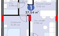 37.54 м², кухня – студия