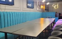 *На первом этаже располагается стильный караоке- бар с общим залом, отдельными кабинками и ВИП-комнатой.