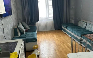 Кухня-студия, тёплый кирпичный дом, большой угловой балкон. Возможна перепланировка для увеличения комнаты. Тихий зелёный район, рядом скверы и остановки.