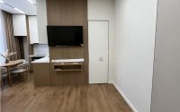 Интерьер выполнен в тёплых натуральных оттенках, с использованием качественных материалов. Кухня полностью оборудована, есть встроенная техника и удобные системы хранения. Отдельное внимание уделено освещению — современные линейные светильники создают комфортную атмосферу.