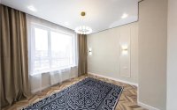 Продается квартира в ЖК «Баймура». Планировка — распашонка. Застройщик — «Свой Дом». В квартире уложен ламинат «елочкой», использован широкоформатный керамогранит. Установлены теплые полы в коридоре, санузле и на балконе.