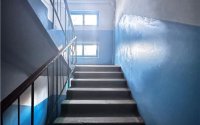 Двор чистый и заасфальтированный, есть детская площадка, подъезд опрятный.