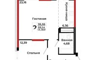 56 м², кухня – студия