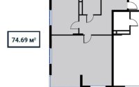 74.69 м², кухня – 11 м²