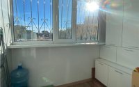 Большая застеклённая лоджия, оборудованная с встроенным шкафом, под балконом погреб (мини-гараж)