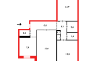 Общая площадь: 72 кв.м. Кухня: 8 кв.м.