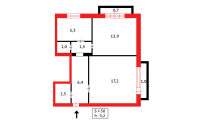 • Общая площадь: 49,5 кв.м.