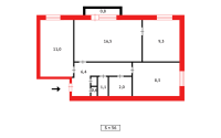 Общая площадь 56 кв.м. Большая кухня 8,3 кв.м.