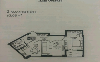 Квартира — распашонка, что обеспечивает отличное естественное освещение и проветривание. В планировке предусмотрено два санузла, выполнена черновая отделка.
