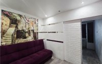 Квартира расположена на 2 этаже панельного дома 1974 года постройки. Площадь — 62 кв.м. Планировка раздельная, с квадратным коридором. Санузел совмещён, в кафеле. Балкон застеклён пластиковыми рамами. Натяжные потолки, межкомнатные двери. Остаются встроенные шкафы. Водонагреватель, холодильник, микроволновка.