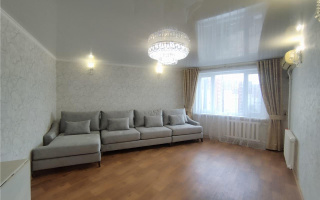 В квартире есть отдельный тамбур, просторная ванная комната 7,5 м², гардероб, кухня 12 м², три спальни и гостиная 22 м². Выполнен качественный косметический ремонт: ламинат, обои, аккуратные потолки.