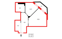 2-комнатная квартира в центре столицы — 53,9 м²