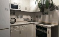 Улучшенная 2-комнатная квартира со встроенной кухней, новой кровлей и лифтом, в пешей доступности школы и магазины; мебель и техника остаются, санузлу нужен косметический ремонт.