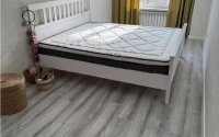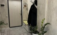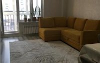 В квартире три просторных окна, из которых открывается живописный вид на горы. Утреннее солнце заливает комнату светом, создавая тёплую и уютную атмосферу.