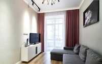 Уютная и светлая квартира в комплексе Манхэттен-5. Полностью укомплектована — всё остаётся для новых владельцев. Дом с подземным паркингом.