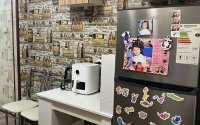 холодильник, плита, духовка, микроволновка, кондиционер и основная мебель.