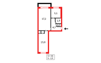 Общая площадь: 43.6 м²