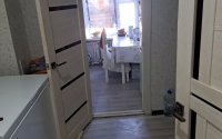 Частично остается мебель: кухонный гарнитур, диван.