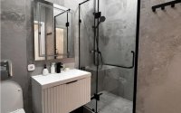 Помещение светлое, уютное и стильное — ремонт делался с использованием качественных материалов. В квартире одна спальня с гардеробной, а вся мебель встроенная.