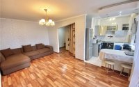 Квартира - студия (перепланировка оформлена) общей площадью 45кв.м расположена на 5м этаже 5и этажного панельного дома 1960 года постройки, крыша дома отремонтирована в 2024 году, подвал в хорошем состоянии - есть кладовая, центральное газоснабжение, косметический ремонт, гардеробная, санузел совмещенный (стены в кафеле), окна пластиковые, балкон остеклен, батареи отопления биметалик, установлен кондиционер, входная дверь бронированная, счетчики, домофон.