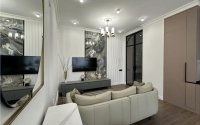 Дизайнерский ремонт, кухня-студия с встроенной техникой.