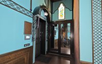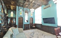 Парадный Зал (Готика/Мавританский) Величественный и Монументальный. Высокие потолки с кессонами, резная лестница, витражные окна в форме арок, обилие дерева и дворцовая мебель.